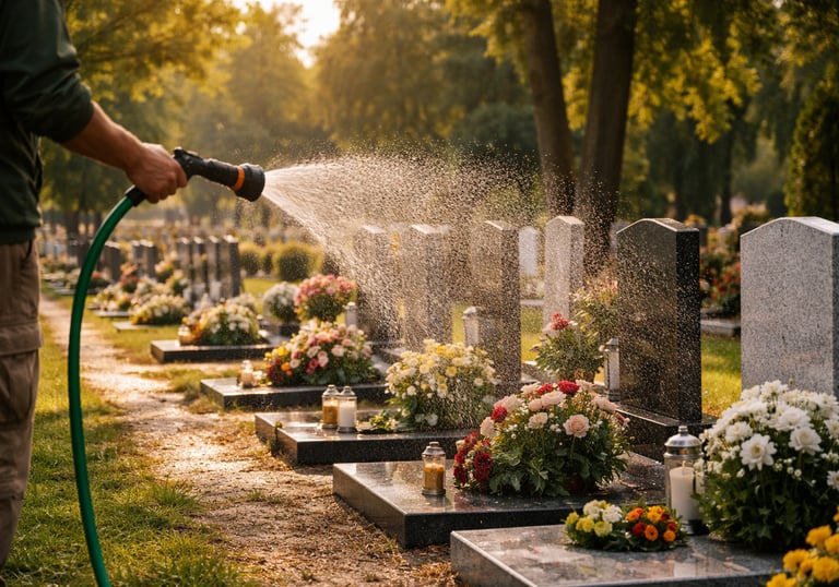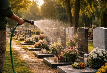 Le nettoyage régulier des sépultures est essentiel pour préserver la mémoire des défunts. Il est crucial, en effet, de s'engager dans cette tâche afin d'honorer la mémoire de ceux qui nous ont quittés. L'aspect des sépultures peut se détériorer rapidement si l'on n'y prête pas attention. Il est donc important d'enlever les feuilles, la terre et autres débris qui peuvent s'accumuler au fil du temps, car ces éléments peuvent donner une impression de négligence et d'oubli.