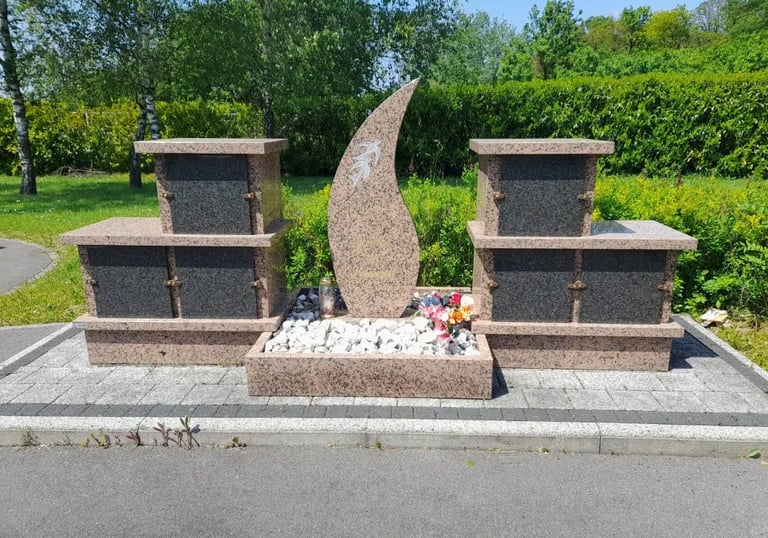 Cavurne : Un cavurne est une structure funéraire destinée à accueillir les cendres d'un ou plusieurs défunts, souvent trouvée dans des cimetières. Columbarium : Un columbarium est un édifice ou une partie d'un cimetière où des urnes funéraires peuvent être placées dans des niches, permettant ainsi un lieu de recueillement pour les proches.